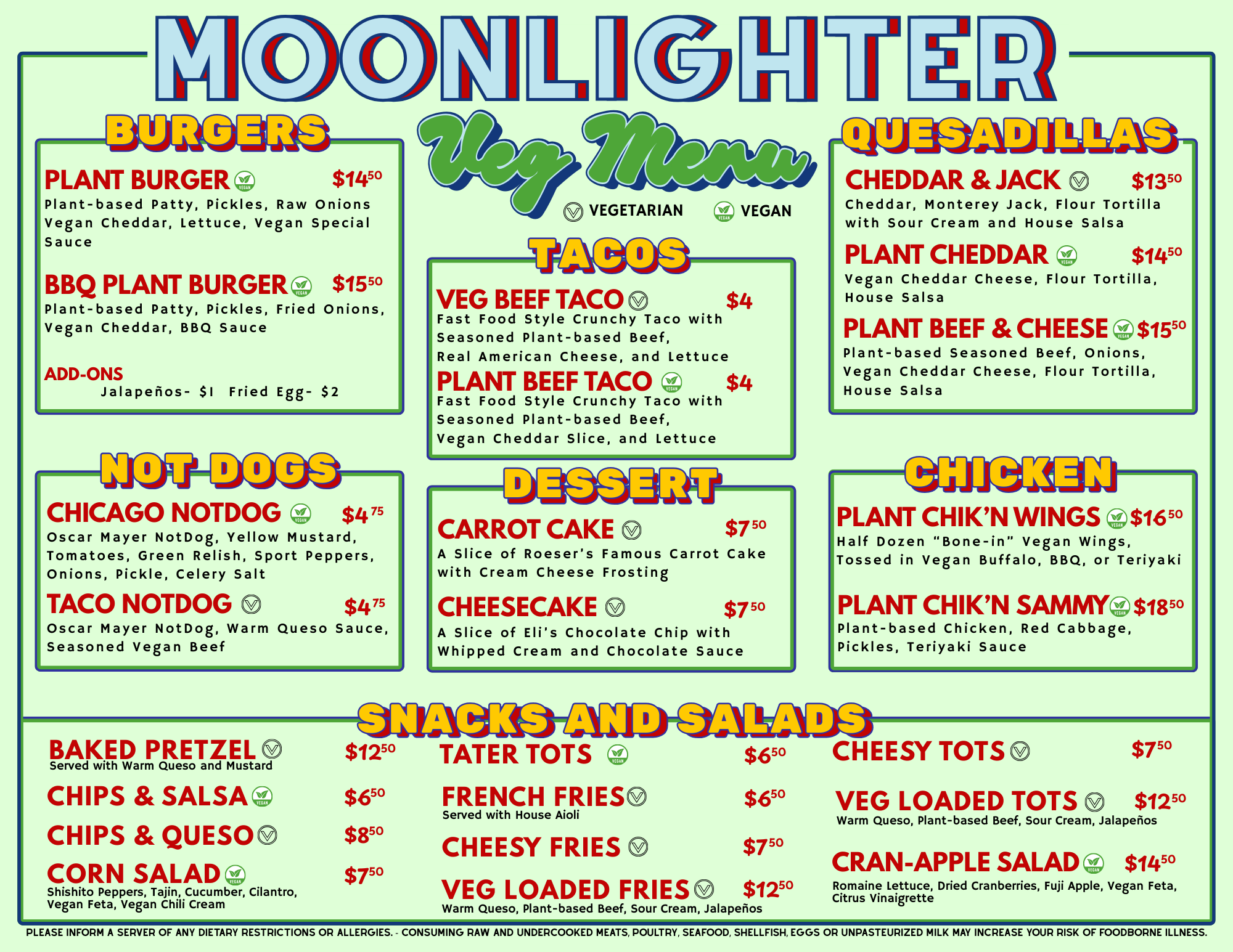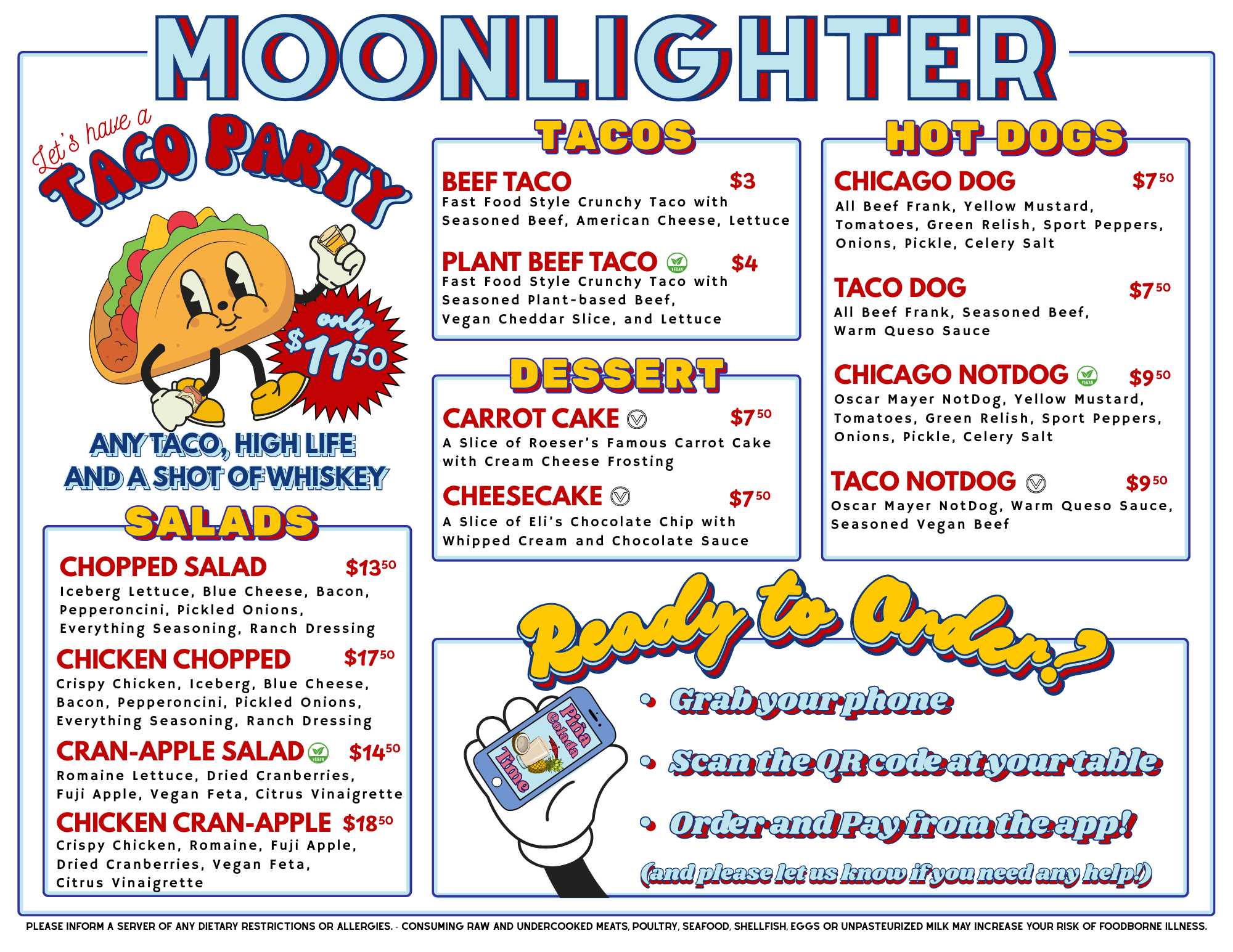 *THESE ITEMS CAN BE ORDERED RAW OR UNDERCOOKED, OR MAY CONTAIN RAW INGREDIENTS.CONSUMING RAW AND UNDERCOOKED MEATS, POULTRY, SEAFOOD, SHELLFISH, EGGS OR UNPASTEURIZED MILK MAY INCREASE YOUR RISK OF FOODBORNE ILLNESS.